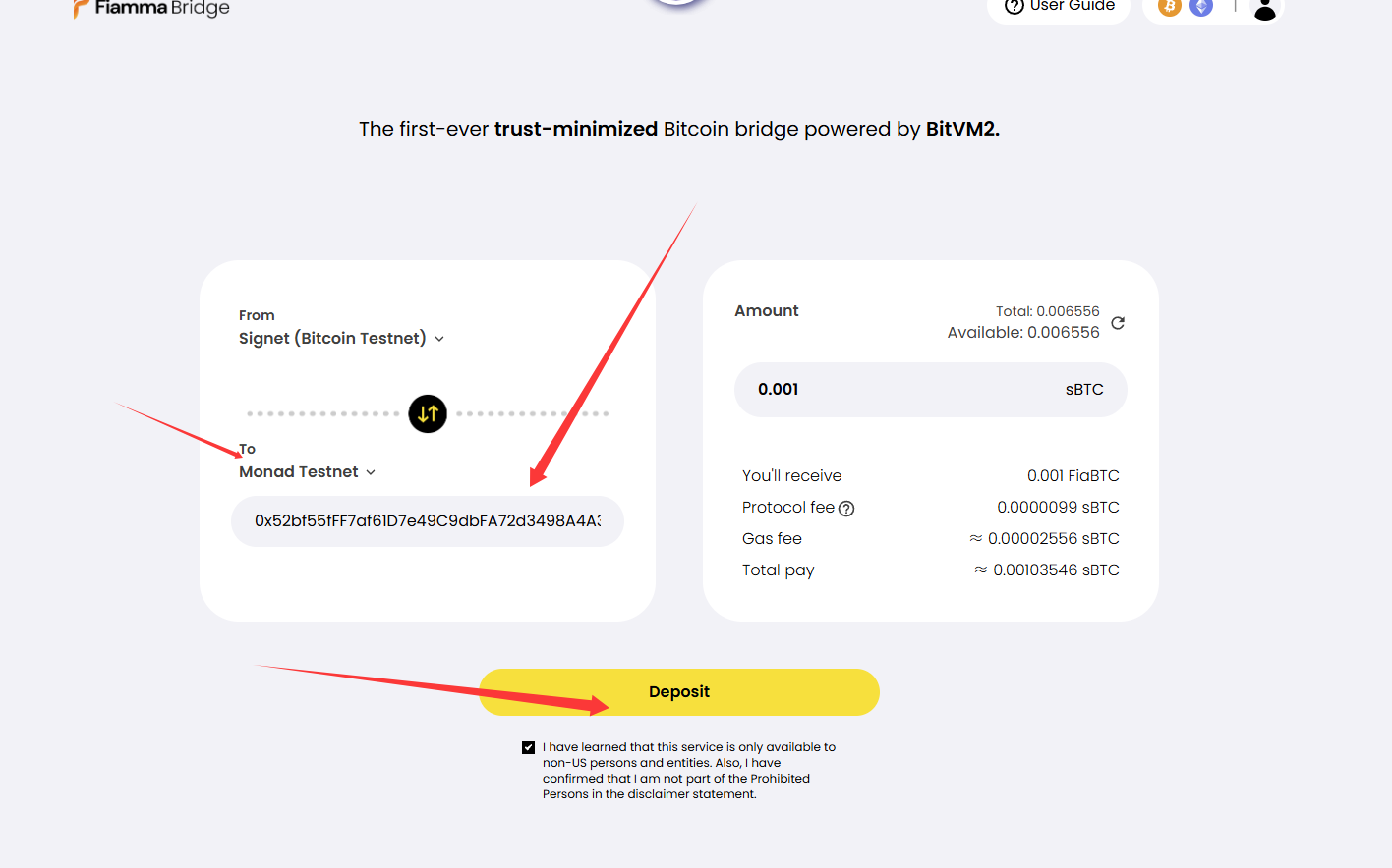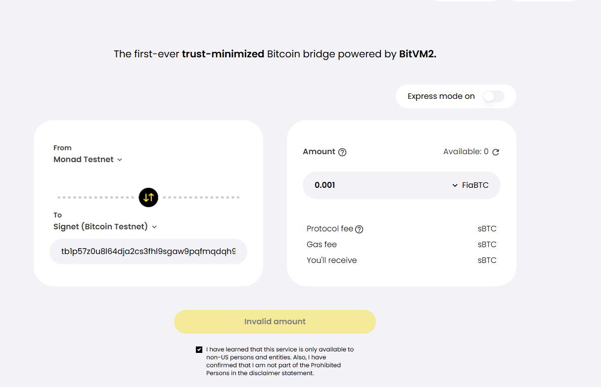 3:从sBtc跨链到EVM(这里我们EVM选择Monad,不要选错了)